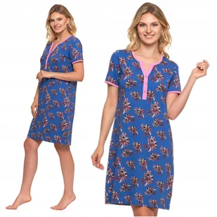 KOSZULA NOCNA na Krótki Rękaw Piżama Damska Kwiaty Prezent Urocza MORAJ XXL
