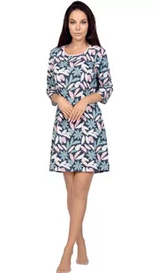Koszula damska wzorzysta, rękaw 3/4. Długość przed kolano. Luźny, wygodny fason. Skład: 100% bawełna.
