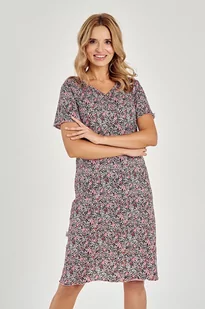 Bawełniana koszula damska z krótkim rękawem. Kolorowy, kwiatowy wzór. Dekolt w szpic, długość do kolana.