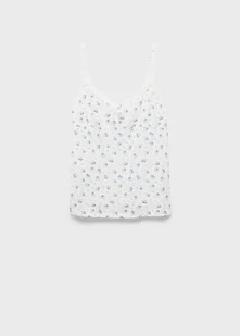 MANGO - Top piżamowy z kwiatowym wzorem i koronką biały - L - Kobieta
