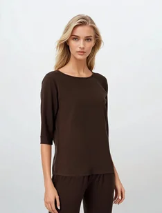 Bawełniana piżama damska czekoladowa Bonjour to propozycja dla kobiet, które cenią minimalizm, wygodę i naturalne tkaniny. Jej klasyczna, spokojna stylistyka sprawia, że doskonale wpisuje się w codzienne rytuały relaksu - zarówno wieczorne wyciszenie, jak i leniwe poranki przy filiżance kawy. Miękka, przyjemna w dotyku dzianina otula ciało, zapewniając pełen komfort noszenia przez cały dzień i noc.