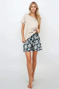 Krótkie rękawy sprawiają, że jest idealna na cieplejsze noce. Dół to starannie wykonane spodenki z nadrukiem, które dzięki elastycznej gumce w pasie doskonale dopasowują się do ciała. Materiał został wyprodukowany z najwyższą dbałością o szczegóły, co gwarantuje wysoką jakość zadruku. Nie susz w suszarkach bębnowych, a dla najlepszej pielęgnacji pierz w 30 stopniach Celsjusza. Ta piżama to synonim elegancji i wygody, idealna dla każdej kobiety, która ceni sobie jakość i styl.