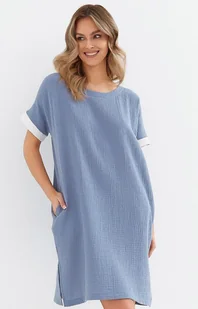 Muślinowa koszula nocna 133 gwarantuje przewiewność i delikatność. Koszula posiada krótki rękaw ozdobiony kontrastującym mankietem, dodającym elegancji i subtelnego akcentu. Na biodrach znajdują się praktyczne kieszenie. Dół koszuli ma po bokach rozcięcia, co zapewnia swobodę ruchów i dodaje lekkości.