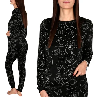 Myszka Minnie DWUCZĘŚCIOWA piżama damska, WELUROWA CIEPŁA piżamka z długim rękawem NA ZIMĘ XL Czarna damska piżama z długim rękawem i spodniami, wykonana z miękkiego welurowego materiału typu milk silk, zapewnia wyjątkowy komfort podczas snu i wypoczynku. Subtelny, jednolity wzór z konturową postacią Minnie Mouse dodaje całości elegancji i dziewczęcego uroku. Materiał jest przyjemny w dotyku i delikatny dla skóry, co sprawia, że piżama idealnie sprawdza się zarówno zimą, jak i w chłodniejsze wieczory. Luźny krój gwarantuje swobodę ruchów i wygodę przez całą noc. To doskonały wybór dla osób, które cenią sobie połączenie stylu Disneya z komfortem i wysoką jakością wykonania.