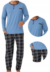 Niebieska piżama męska bawełniana guziczki spodnie w kratkę komplet XL