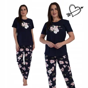 PIĘKNA KWIATOWA PIŻAMA VIENETTA 48 50 4XL 5XL Granat Kwiat Komplet bawełna
