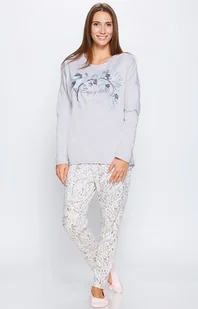 - piżama damska - model z długimi rękawami i nogawkami - spodnie w ozdobny wzór - komfortowa propozycja do spania