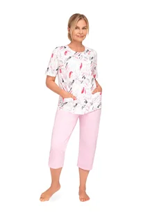 Specyfikacja: ✳️ rozmiar 2XL (przed zakupem sprawdź tabelę rozmiarów) ✳️ materiał: 100% bawełna ✳️ polski producent ✳️ krótki rękaw ✳️ krótkie spodnie 3/4 ✳️ okrągły dekolt ✳️ bluzka posiada dwie kieszenie ✳️ góra piżamy całkowicie rozpinana ✳️ elastyczna guma w pasie ✳️ kolor dominujący: różowy/ wzór akwarele Firma Martel polski producent oferuje: Piżamę damską Maria Piżama Maria to doskonały wybór dla kobiet ceniących sobie komfort i elegancję podczas snu.