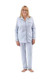 PIŻAMA DAMSKA 2XL ROZPINANA DŁUGI RĘKAW BAWEŁNIANA NIEBIESKA W PASKI