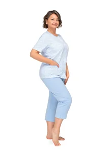 Piżama Damska 3Xl Krótki Rękaw Rozpinana Z Kieszeniami Niebieska Bawełniana