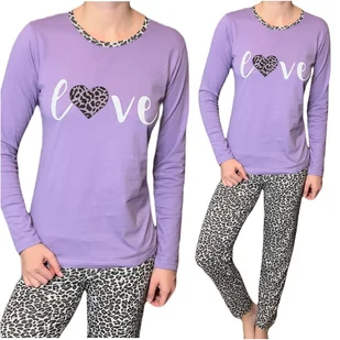 Piżama damska bawełniana długie spodnie/rękaw FIOLET love panterka XL