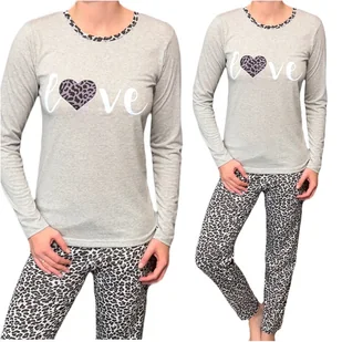 Piżama damska bawełniana długie spodnie/rękaw SZARY love panterka XL