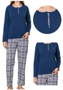 Piżama damska bawełniana granatowa z guziczkami i spodniami w kratkę L
