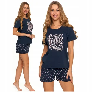 Piżama Damska Bawełniana Krótka z Serduszkami LOVE Dwuczęściowa 2XL MORAJ Właściwości Piżamy: Piżama Damska Dwuczęściowa Marka: Moraj Kolor: Granatowy Koszul...
