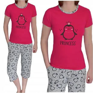 PIŻAMA DAMSKA BAWEŁNIANA NADRUK PINGWIN KRÓTKI RĘKAW MIEKKA FUKSJA XXL