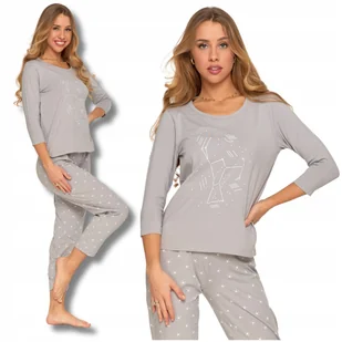 PIŻAMA DAMSKA Bawełniana Rękaw 3/4 Długie Spodnie Wygodna Szara MORAJ XXL