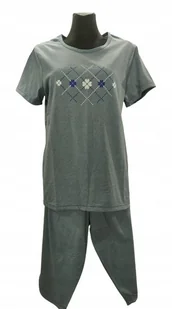 OPIS PRODUKTU: Materiał: 100% bawełna Rozmiar: L Kolor: szary Rękaw: krótki Spodnie 3/4 Produkt polski Piżama wykonana jest z bawełny wysokiej jakości. Delik...