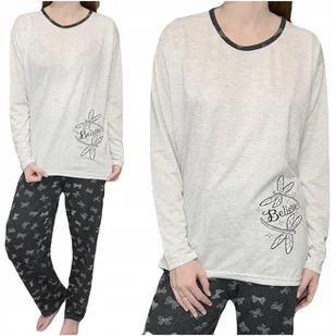 Piżama damska bawełniana z długim rękawem szary motyle Believe 3XL