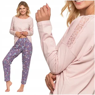 Piżama Damska Delikatna Koronka Długi Rękaw Spodnie w Kwiaty MORAJ 3XL