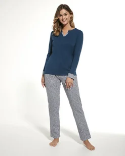 Piżama damska z długim rękawem i długimi spodniami. Zestaw idealny na chłodniejsze jesienne i zimowe noce. Dekolt bluzki w finezyjnym kształcie, wykończony o...