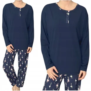 Piżama damska długi rękaw i długie spodnie granatowy pelikan 3XL