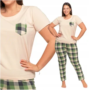 PIŻAMA DAMSKA Dwuczęściowa Krótki Rękaw Spodnie w Kratę Wygodna MORAJ XXL
