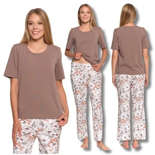 PIŻAMA DAMSKA DWUCZĘŚCIOWA MORAJ KRÓTKI RĘKAW SZEROKIE SPODNIE KWIATKI XXL
