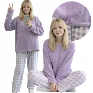 Miękki materiał przyjemnie otula ciało i zapewnia ciepło nawet w chłodne noce. Sprawdzi się zarówno jako piżama do spania, jak i domowy komplet homewear. ❤️ Dzięki uniwersalnemu krojowi piżama dobrze układa się na sylwetce i nie krępuje ruchów. To doskonały wybór na wieczory z herbatą, poranki bez pośpiechu oraz leniwe dni w domu. ❤️ Uroczy fioletowo-biały wzór w kratkę sprawia, że piżama wygląda nowocześnie i kobieco.