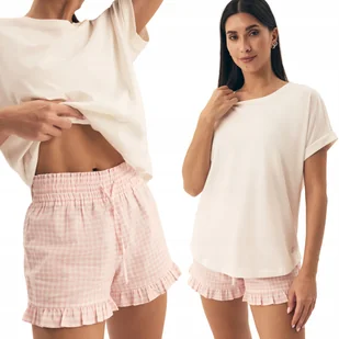 PIŻAMA DAMSKA Kobieca Urocza Koronkowy Dekolt Szorty Gładka MORAJ M