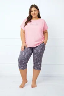 Piżama damska ze spodniami to świetna propozycja na każdą porę roku. Charakteryzuje ją wygodny krój, romantyczny wzór w serduszka i przewiewna, bawełniana dzianina, która zapewnia maksymalny komfort noszenia. Górna część to luźna koszulka z krótkimi rękawami, ozdobiona inspirującym napisem Choose Kindness oraz okrągłym dekoltem wykończonym subtelną lamówką. Spodnie z uroczym motywem serc, zostały dodatkowo wyposażone w praktyczne naszywane kieszenie.