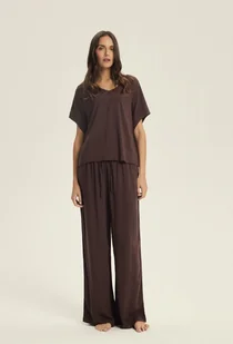 Subtelna elegancja w naturalnym wydaniu Piżama damska Corenso w kolorze czekoladowego brązu to propozycja dla kobiet, które cenią lekkość, wysokiej jakości m...