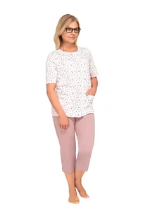 PIŻAMA DAMSKA L CAPPUCCINO W KWIATY ROZPINANA KRÓTKI RĘKAW SPODNIE BAWEŁNA