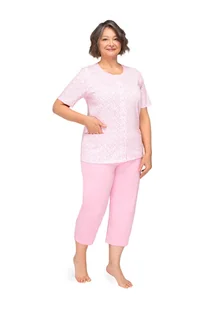 PIŻAMA DAMSKA L KRÓTKI RĘKAW ROZPINANA Z KIESZENIAMI RÓŻOWA BAWEŁNIANA