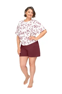 Piżama Damska L Krótki Rękaw Spodenki Szorty Bordowa Bawełniana