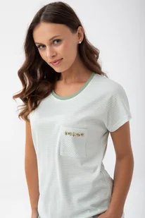 Piżama damska LUNA kod 323 zielona w przecierane paski spodnie bermudy 3XL