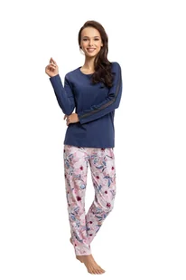 Piżama Damska Luna Kod 615 Granatowa Z Rękawami Z Koronką / Pastelowe Kwiaty L