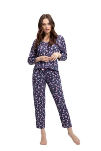 Piżama damska LUNA kod 635 granatowa we wrzosowe niebieskie kwiaty XL