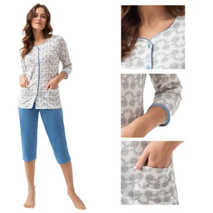 Piżama damska LUNA kod 668 niebieska kwiaty paisley rozpinana M