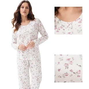 Piżama damska LUNA kod 691 ecru różowa prążki różyczki kwiatki 3XL
