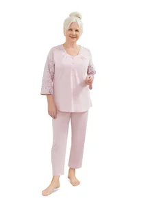 PIŻAMA DAMSKA M KRÓTKI RĘKAW 3/4 BAWEŁNA ELEGANCKA DWUCZĘŚCIOWA RÓŻ