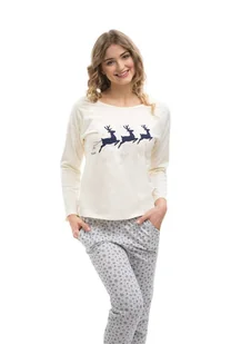 Piżama Damska Młodzieżowa 2Xl Ecru Beż Długi Rękaw Święta Renifery Na Zimę