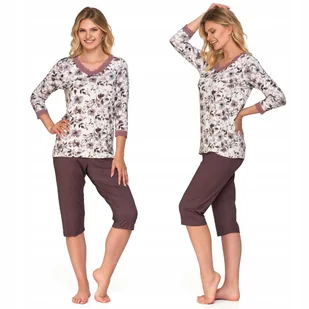 Piżama Damska Wiskoza Elegancka 3/4 Rękaw Spodnie Kwiaty Koronka S MORAJ Piżama Damska, która łączy stylowy design z komfortem noszenia. Piżama składa się z ...