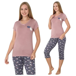 PIŻAMA DAMSKA WISKOZA Z WISKOZY KRÓTKI RĘKAW SPODNIE 3/4 ELEGANCKA LETNIA KOBIECA WYGODNA L Piżama Damska z Krótkim Rękawem i Spodniami 3/4 L- Wygoda i Styl na Dobranoc! Zapraszamy do zapoznania się z naszą wyjątkową piżamą damską, z wiskozy, która łączy w sobie komfort snu i modny design. Idealna dla każdej kobiety ceniącej sobie wygodę i styl. Szukasz idealnej piżamy damskiej? Wybierz naszą! ✨Miękka i delikatna wiskoza 95% z niewielką 5% domieszką elastanu ✨Kolor: różowa bluzka, fioletowe spodnie w serduszka ✨Rozmiar: L ✨Modny i kobiecy wzór ✨Krótki rękaw ✨Długość spodni 3/4 ✨Luźna i wygodna ✨Marka Morella Zamów już dziś i ciesz się wygodnym snem! Dlaczego warto wybrać naszą piżamę damską? Komfortowy sen.