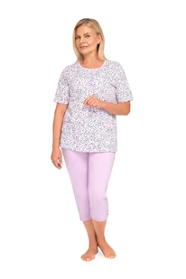PIŻAMA DAMSKA XL KRÓTKI RĘKAW ROZPINANA Z KIESZENIAMI FIOLETOWA BAWEŁNIANA