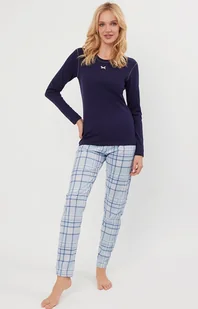 Piżama damska z długim rękawem i długimi spodniami Adriana, łączy w sobie nie tylko wygodę, ale także styl i jakość. Wykonana z wysokiej jakości bawełnianego materiału, liczymy, że zapewni Ci komfortowy sen przez całą noc. Góra piżamy posiada długi rękaw, co sprawia, że nadaje się idealnie na chłodniejsze wieczory. Okrągły dekolt dodaje delikatnego uroku, a ozdobna kokardka nadaje mu wyjątkowego charakteru, podkreślając subtelność i kobiecość. Spodnie z długimi nogawkami również wykonane są z tego samego miękkiego bawełnianego materiału, co gwarantuje przyjemne uczucie na skórze.