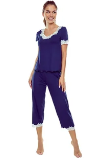 Piżama damska z krótkim rękawkiem i spodniami 3/4 Aster to wyjątkowy element garderoby nocnej, który łączy komfort i elegancję. Wykonana z delikatnego, przewiewnego materiału, jakim jest wiskoza, zapewnia miękkość i przyjemność noszenia. Wiskoz to sztuczne włókno pochodzenia naturalnego, pozyskiwane głównie z celulozy drzewnej. Dzięki swoim właściwościom jest ono przyjazne dla skóry i zapewnia dobry przepływ powietrza, co sprawia, że piżama jest odpowiednia zarówno na letnie, ciepłe noce, jak i w inne pory roku. Piżama jest zaprojektowana w taki sposób, aby łączyć wygodę z subtelnym stylem.