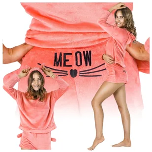 PIŻAMA DAMSKA ZIMOWA DWUCZĘŚCIOWA KOCIA USZY CIEPŁA MIĘKKA PLUSZOWA RÓŻOWA XL