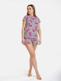Piżama dwuczęściowa szary S BAWEŁNIANA PIŻAMA Komplet Damski do Spania Dwuczęściowy w Wiśnie Szary S ✨Piżama damska dwuczęściowa – komfort, styl i orzeźwiający urok na każdą noc! ?? Piżama w szarym kolorze z uroczym wzorem wiśni ? to doskonały wybór dla kobiet, które cenią wygodę, styl i subtelne detale. Wykonana z połączenia bawełny i wiskozy, piżama jest miła w dotyku, przewiewna i komfortowa, zapewniając wygodę przez całą noc. Różowe wiśnie na tle delikatnego szarego koloru dodają piżamie świeżości, a jednocześnie wprowadzają lekko romantyczny nastrój. Klasyczny, okrągły dekolt ? oraz krótkie rękawy ? sprawiają, że piżama jest idealna na cieplejsze noce. Szorty z elastyczną gumką w talii ? zapewniają komfort i swobodę ruchów, a dekoracyjna kokarda dodaje uroku.