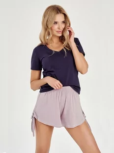 Bluzka z krótkim rękawem Dekolt typu V Krótkie spodenki Luźny, komfortowy krój Miękka i przewiewna tkanina Pakowany w woreczek W pasie gumka Wiązanie z boku ...
