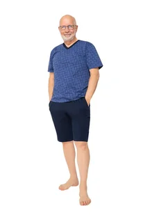 Piżama Męska 2Xl Krótki Rękaw Spodnie Krata Bawełna Dla Taty Dziadka Niebieska